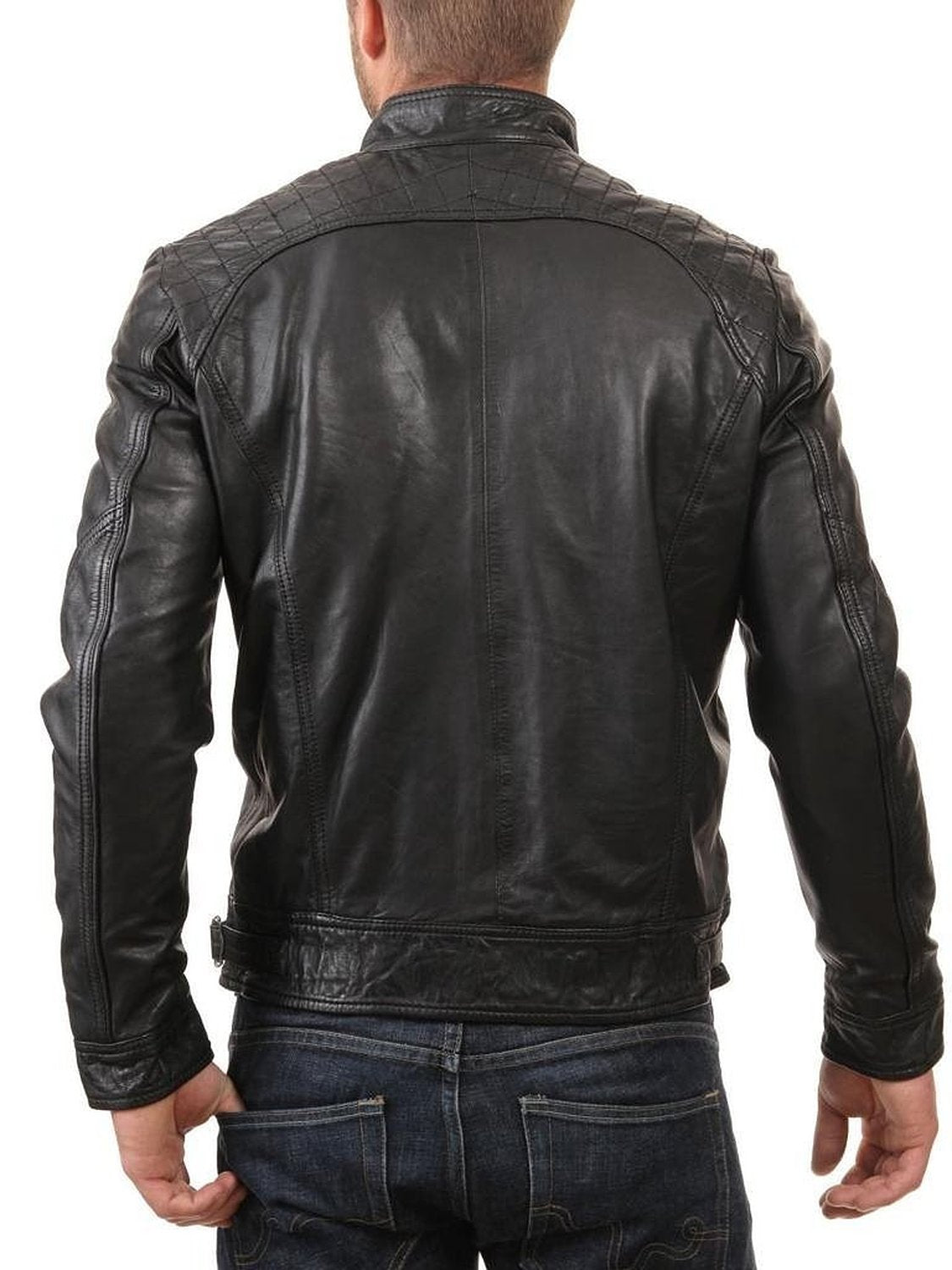 Stand Collar Leather Biker Jacket - Black - Black / M