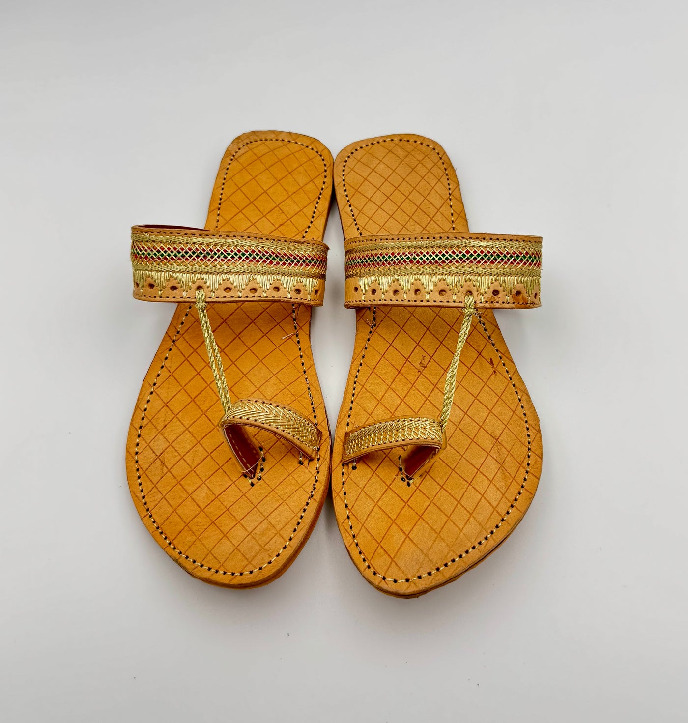 Handcrafted Women Kolhapuri Sandals - Gold Traditional Sale
